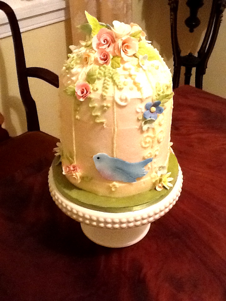 I was curious as to how I would make a peacock dress. I had no idea how this one would turn out. Always very interesting to see where a cake idea will lead you...